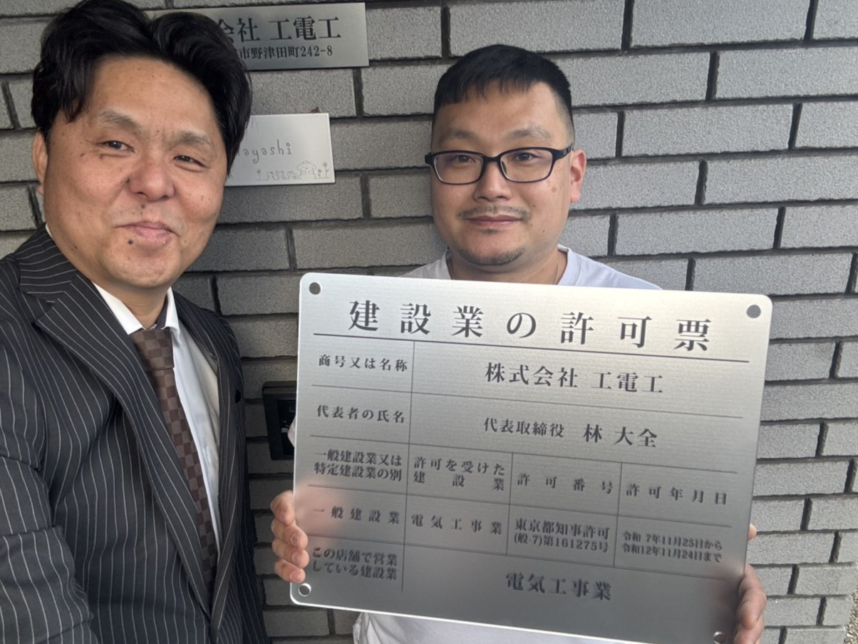 当事務所にご委任いただいた新規申請の許可を取得したお客様にお祝い品に「建設業許可票」をプレゼントいたします。
